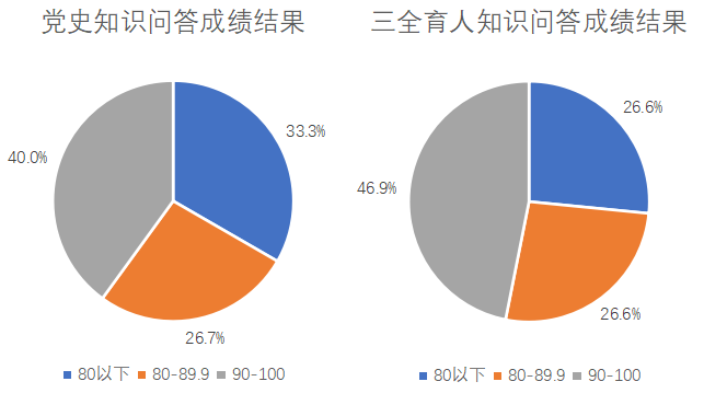 此次线上问答得到了全院教师的广泛积极参与,平均成绩分别为81分和85.08分,充分体现出学院教师党史学习和“三全育人”知识学习的积极性高、成效性好。