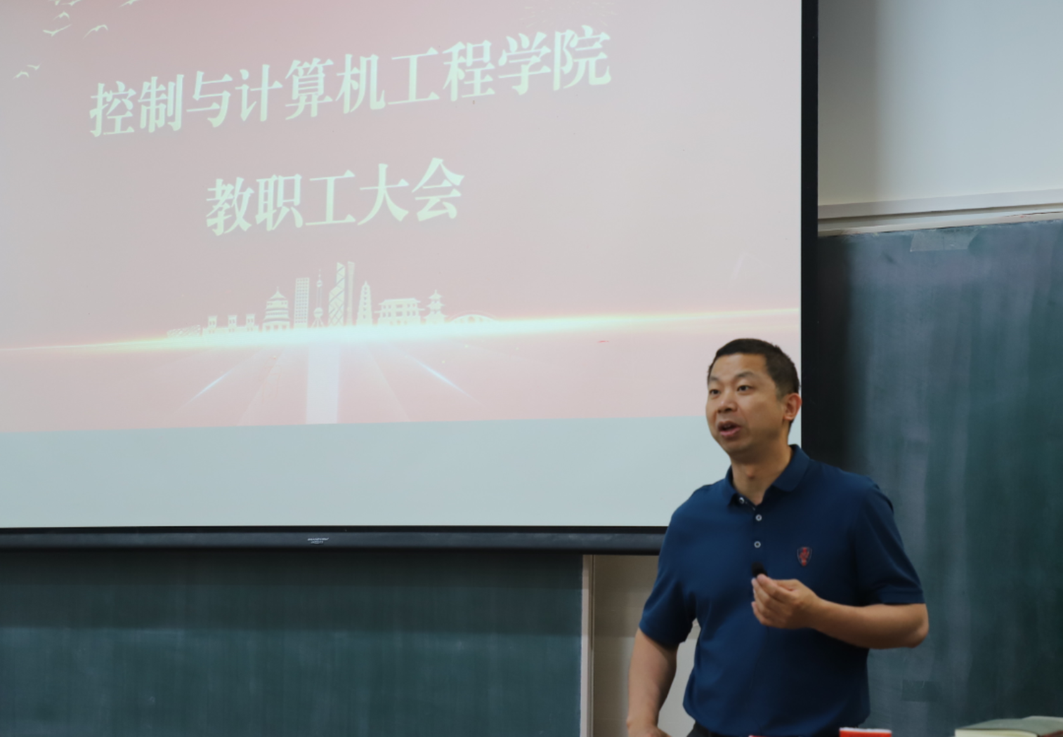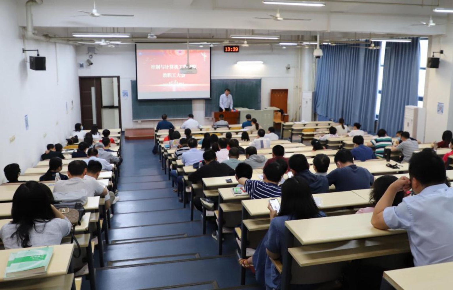 于主楼E102召开教职工大会,学院全体教职员工参加会议。会议由学院党委副书记、工会主席耿晔主持。