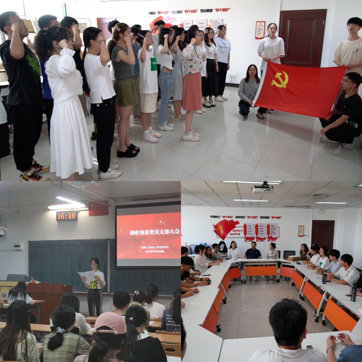 扎实做好党员发展工作,坚定理想信念。学院党委坚持把政治思想贯穿党员教育管理始终,组织学生党支部召开接收预备党员支部大会,通过谈心谈话等方式对预备党员开展生动深刻的党性教育,引导新党员自觉增强党性意识,以实际行动践行党的初心使命和责任担当,永葆共产党员的政治本色。