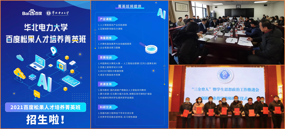 搭建创新创业平台,强化协同育人。为加强创新性、应用型、技能型等复合型人才培养,学院紧密结合行业和社会发展的需求,深入推进校企联合人才培养和协同育人工作。学院同百度公司共同承办中国高校人工智能人才国际培养计划同时,同步设立k漫画 -百度松果人才培养菁英班,开展线上实践和线下交流相结合的免费授课。学院同国家电网公司大数据中心在大数据、人工智能、能源互联网等方向开展深度合作,并聘请了企业导师。为进一步提升学生创新创业实践能力,学院聘任了新一届13名创新创业指导教师,以促进学生实践能力的提升。
