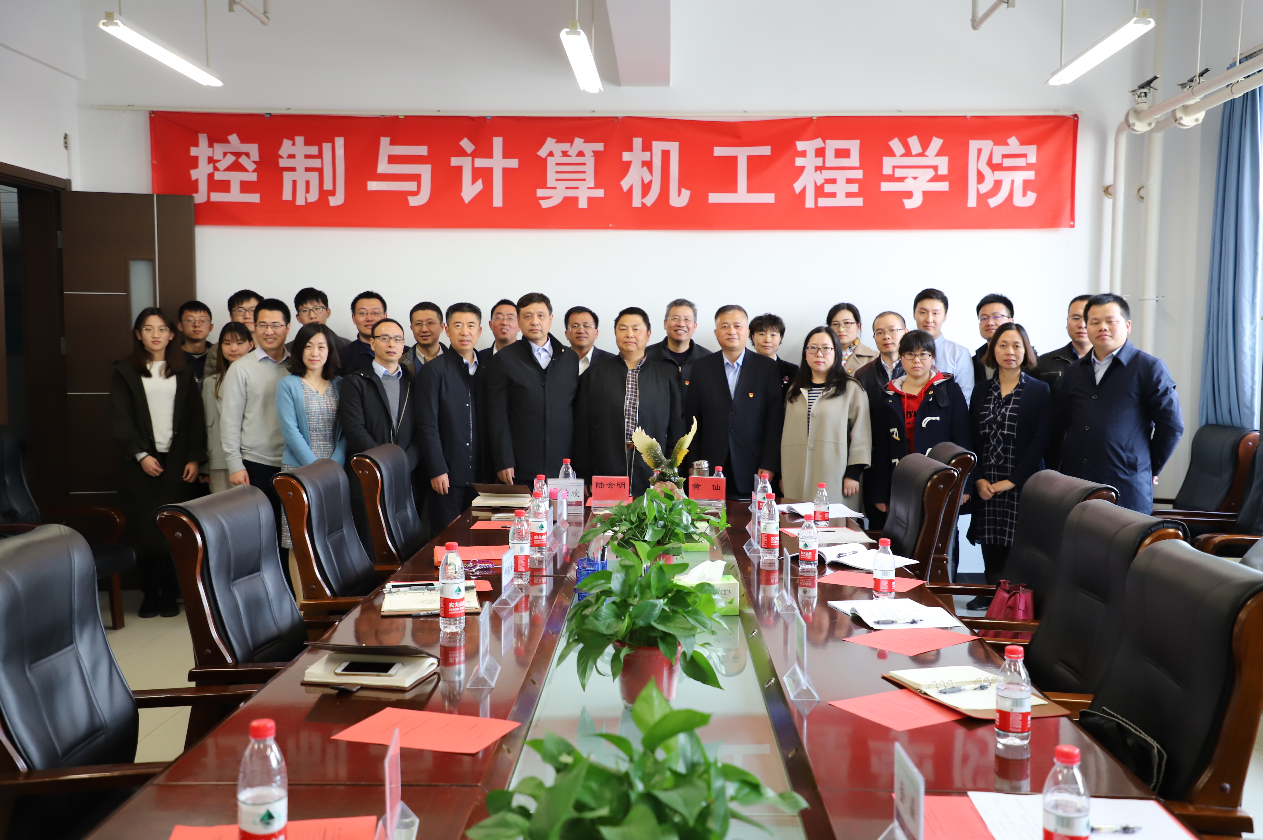 2019年3月26日下午,控制装置与系统教研室党支部与北京国电智深控制技术有限公司第三、第四党支部,研控计1825班党支部开展的“1+1+1”结对共建升级版活动在学院会议室举行。出席本次会议的企业代表有北京国电智深控制技术有限公司党委书记黄焕袍,中共十九大代表、第四党支部书记、技术管理部经理陈峰,工程中心总经理、第三党支部书记张永霞,培训中心经理张敏及党员代表;校方代表有控计学院党委书记刘威、副院长师瑞峰、组织员葛红、研究生辅导员费翔以及控制装置与系统教研室全体老师和研控计1825班党员代表。会议由控制装置与系统教研室党支部书记黄从智主持。