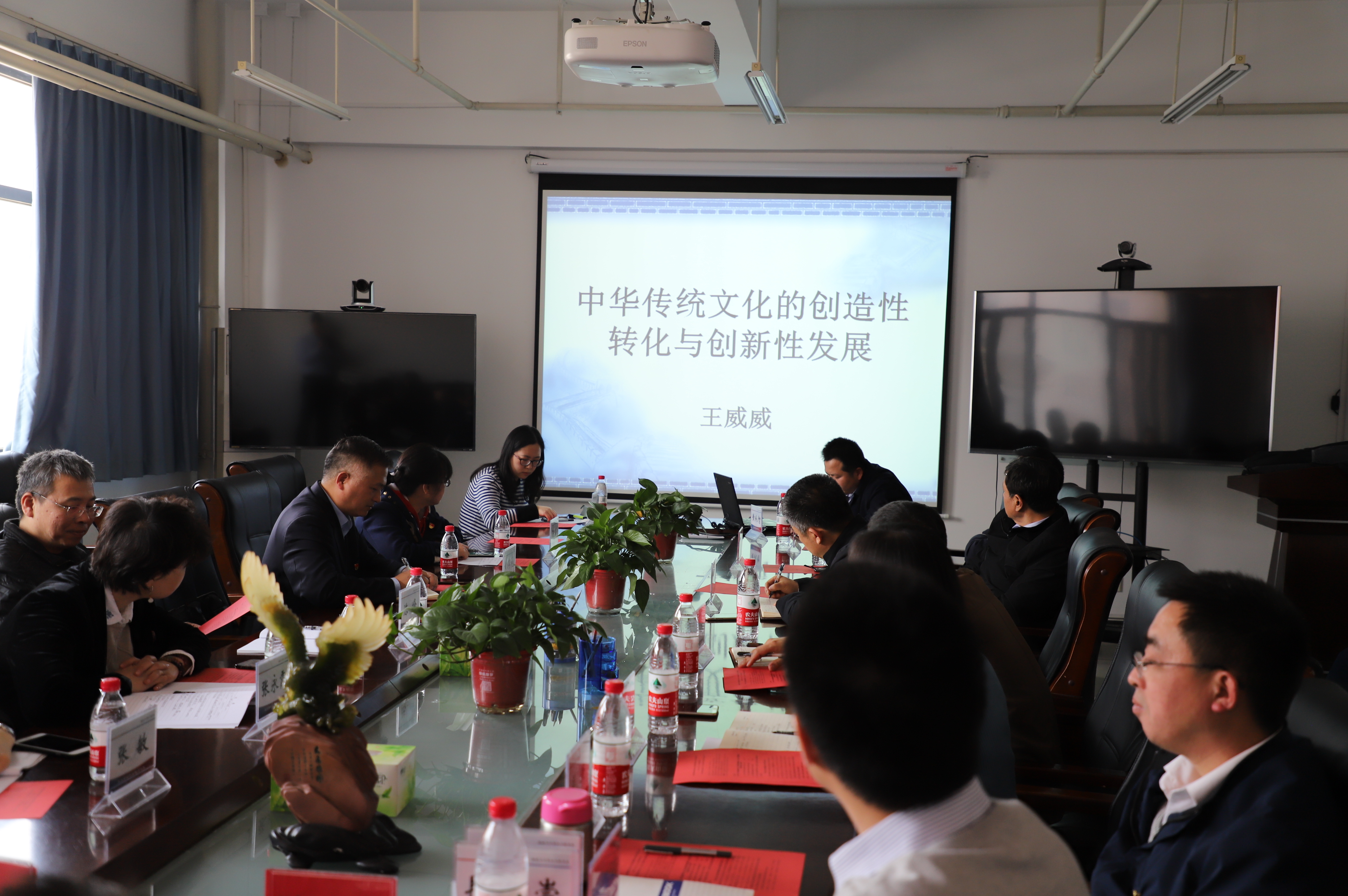 会议第一部分特别邀请了k漫画 国学研究中心主任、法家研究中心副会长王威威教授为校企双方作了《中华传统文化创造性转化和创新性发展》的讲座。王威威结合党的十九大报告生动诠释了文化自信是一个国家、一个民族发展中更基本、更深沉、更持久的力量,并从核心思想理念、中华传统美德、中华人文精神三个维度提出了新时代如何推动中华优秀传统文化创造性转化、创新性发展问题。与会双方代表深受启发。