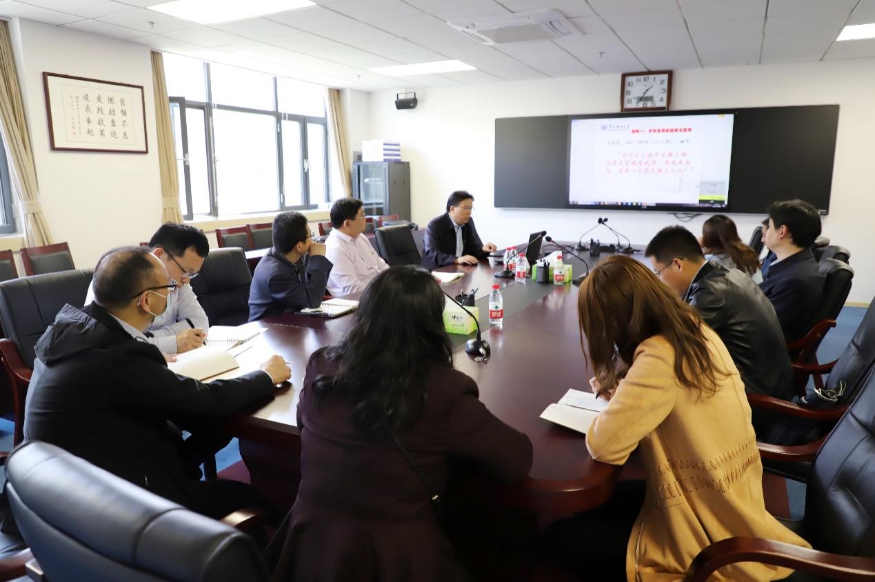 召开了党委理论学习中心组(扩大)党史学习教育专题学习会。学院党委理论学习中心组成员和全体教师党支部书记、教研室主任参加了此次学习会,会议由学院党委书记孟大伟主持。