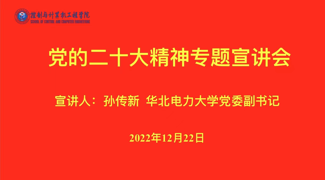 为深入学习贯彻党的二十大精神,进一步推动党的二十大精神入脑入心,12月22日上午,校党委副书记孙传新为k漫画 师生作党的二十大精神专题宣讲。学院党委理论学习中心组全体成员、师生党员、高层次人才、党外代表、青年教师参加了此次宣讲会,会议由学院党委书记王韶华主持。
