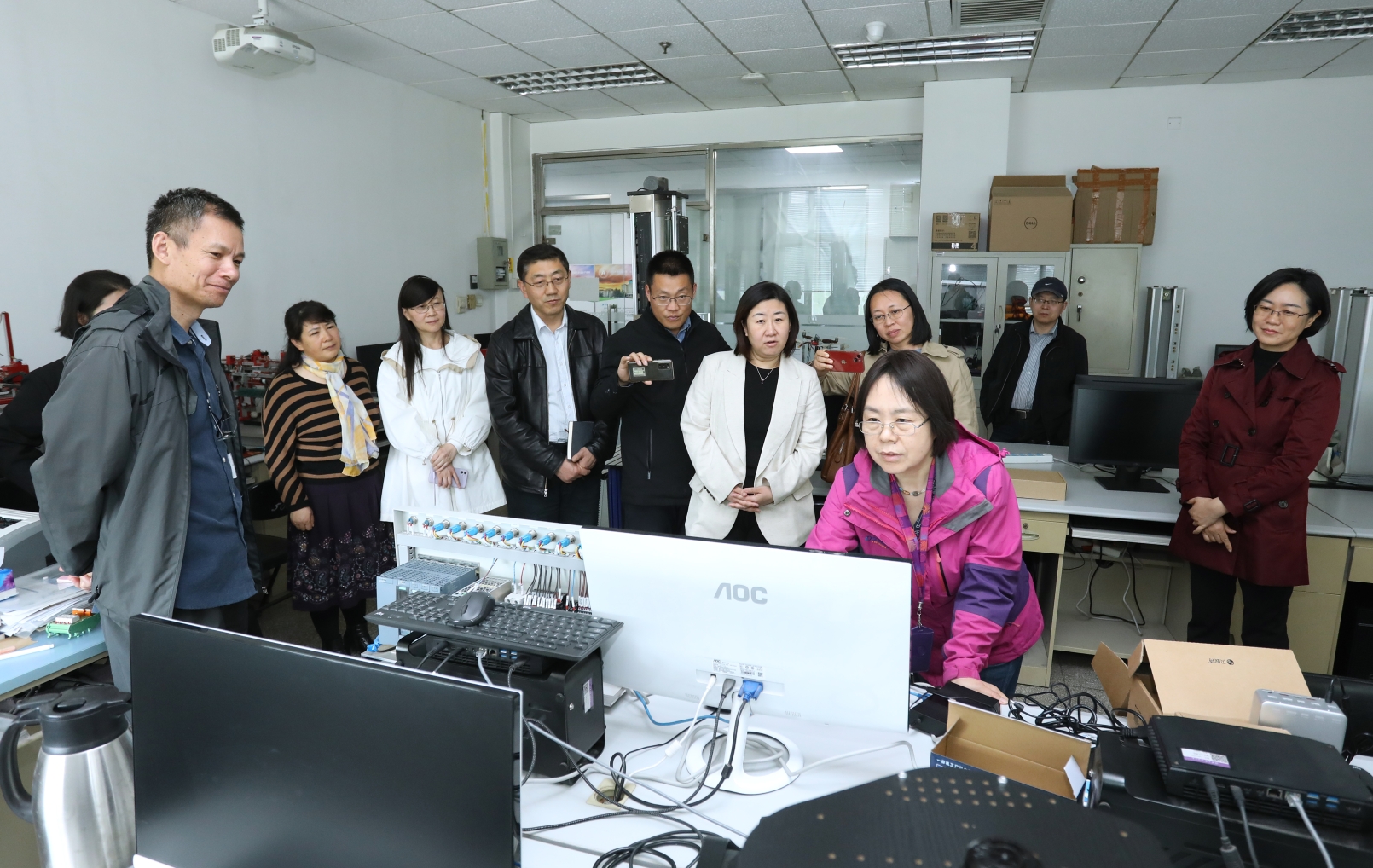 双方就日新月异的自动化专业知识体系、培养方案和课程大纲制定经验、课程思政建设举措、实验教学改革建设、研究生区分培养体系建设、研究生学位论文过程监管举措、科研团队建设经验、党建和业务深度融合发展的做法、标杆院系和样板支部创建的举措与经验、学生心理辅导工作的创新举措、辅导员体系激励机制建设等内容,进行了深入探讨和广泛交流。会后,学院一行参观了自动化系师生活动场所,以及实验教学中心的过程控制、机器人、无人机等实验室,实验教学中心副主任杨建华详细介绍了实验中心的教学、设施和运行情况。