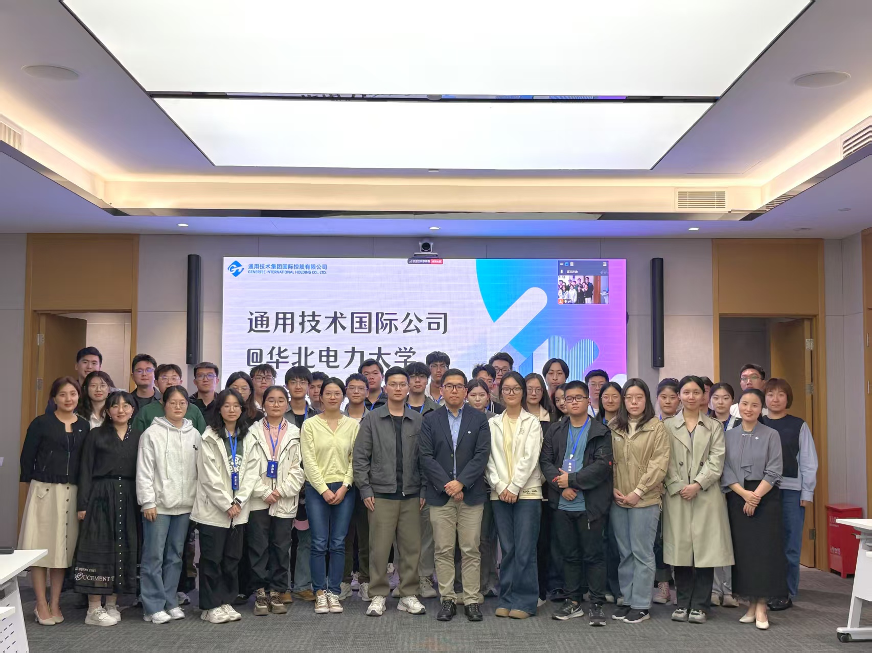 随后,双方开展交流座谈,华电01级校友王鹏、16级校友陈天达分享职业成长故事。王鹏校友与大家详细介绍了通用技术公司的业务分布、发展方向等情况,并分享了其自身在通用技术公司的成长经历与心得,鼓励同学们开阔视野,敢于挑战。陈天达校友在线上也与同学们分享了自己在孟加拉的工作经历。最后,人资部门详细介绍了人才培养体系、人员选拔标准及通新粉暑期实习计划,并对同学们来通用技术国际公司实习、工作表示期待与欢迎。