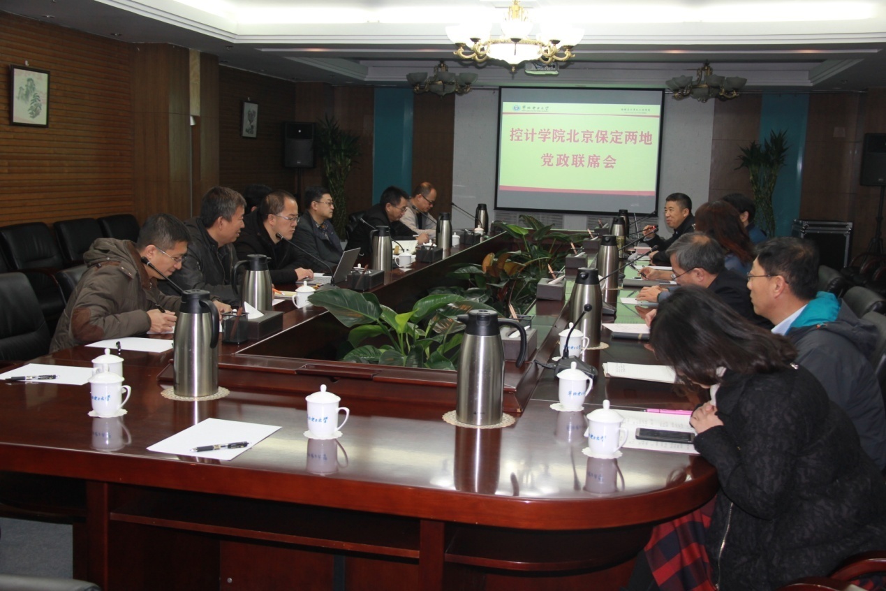 2019年12月15日,k漫画 在北京校部召开了北京保定两地党政联席会,共商党建与课程思政工作、学科建设、教育教学、学生培养等方面的一体化发展事宜。控计学院、自动化系、计算机系党政班子成员参加,会议由刘威主持。